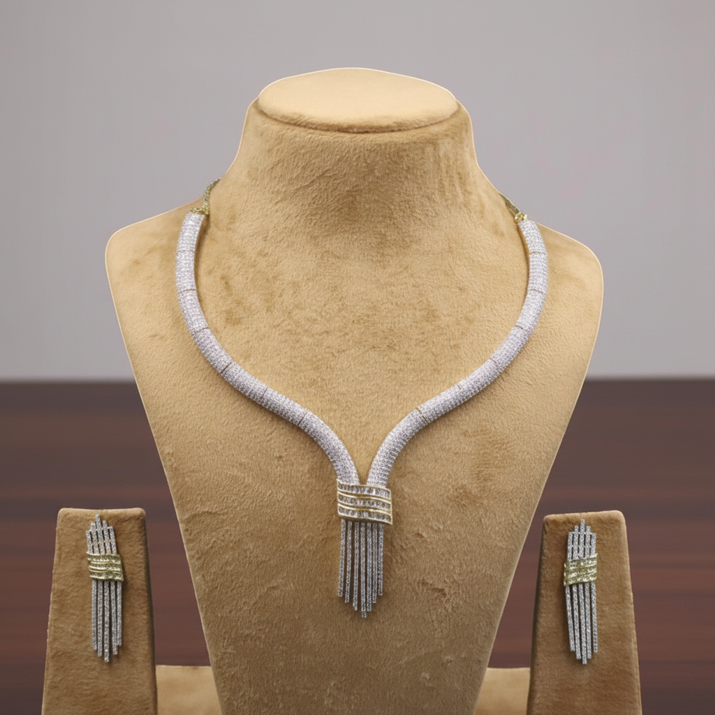 Silvery Brindavati American Diamond Necklace set with Maangtika