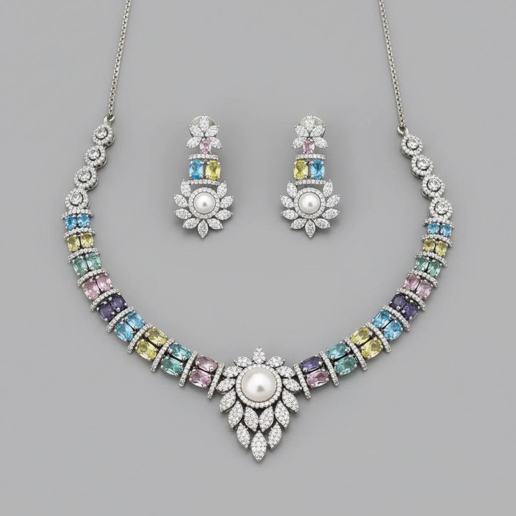 Multicolor Surasa American Diamond Necklace set