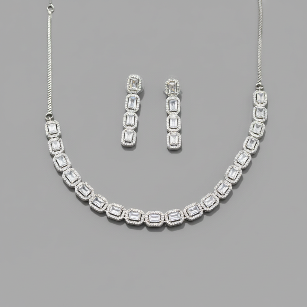 Silvery Chitrangi American Diamond Necklace set