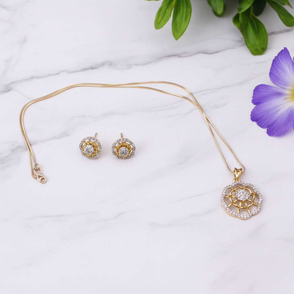 Gold Silvery Rashmika American Diamond Pendant set