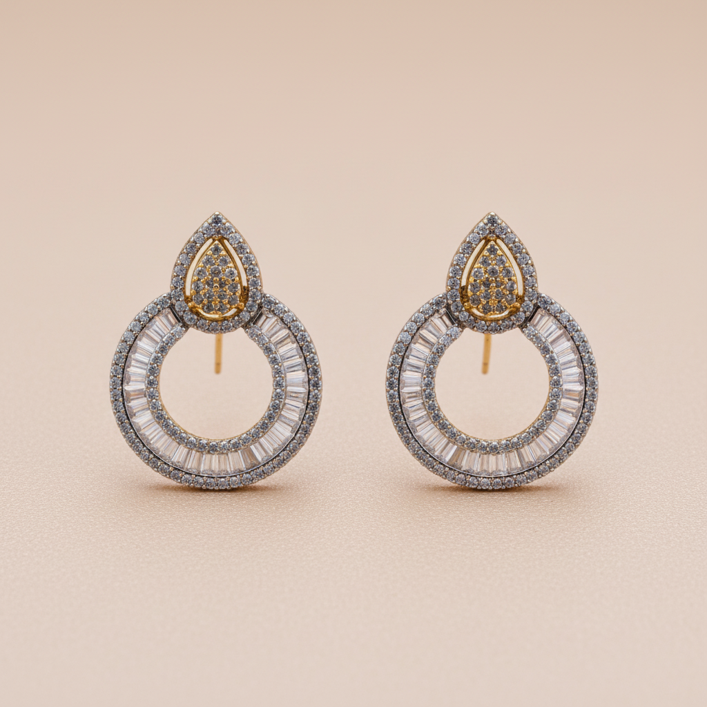 Grace meets glamour in these exquisite American Diamond earrings. Meticulously crafted and sparkling with high-quality simulated stones, they bring timeless sophistication and shine to every outfit, making them a must-have statement piece for any jewelry lover.