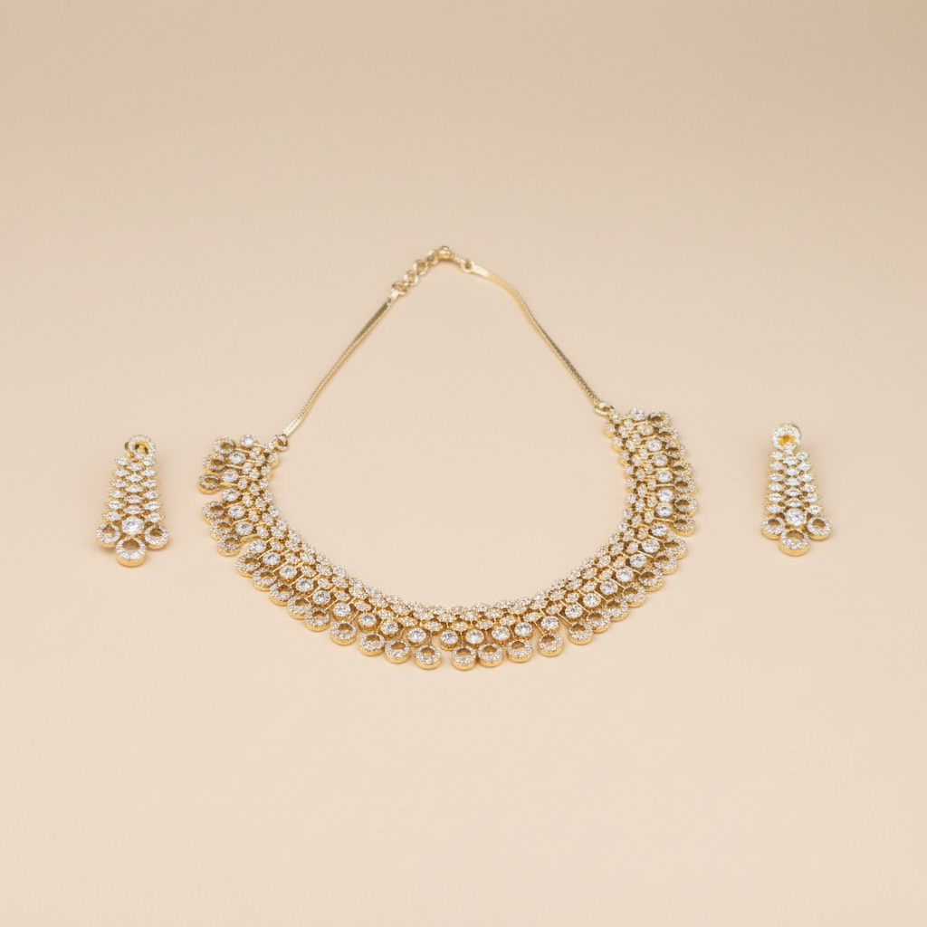 Premium-quality American Diamond set adorned with exquisite Zirconia stones, perfect for festive celebrations, weddings, and your upcoming special occasions.