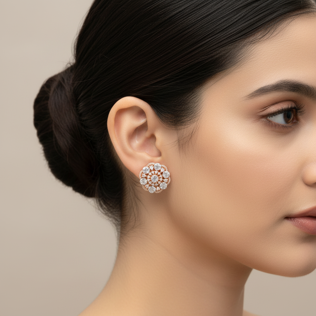 Grace meets glamour in these exquisite American Diamond earrings. Meticulously crafted and sparkling with high-quality simulated stones, they bring timeless sophistication and shine to every outfit, making them a must-have statement piece for any jewelry lover.