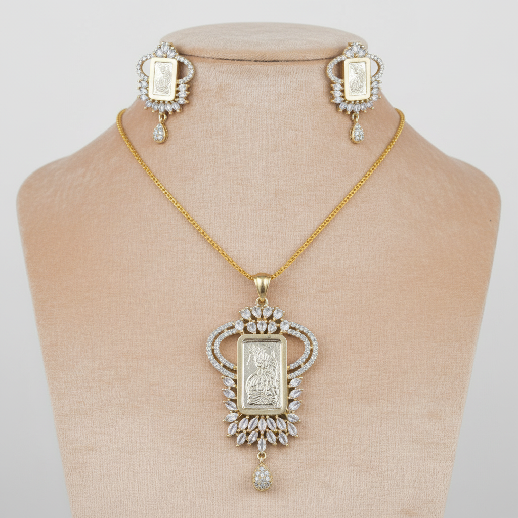 Elevate your elegance with this stunning American Diamond pendant set, designed to dazzle with every glance. Perfect for adding a refined sparkle to any occasion.