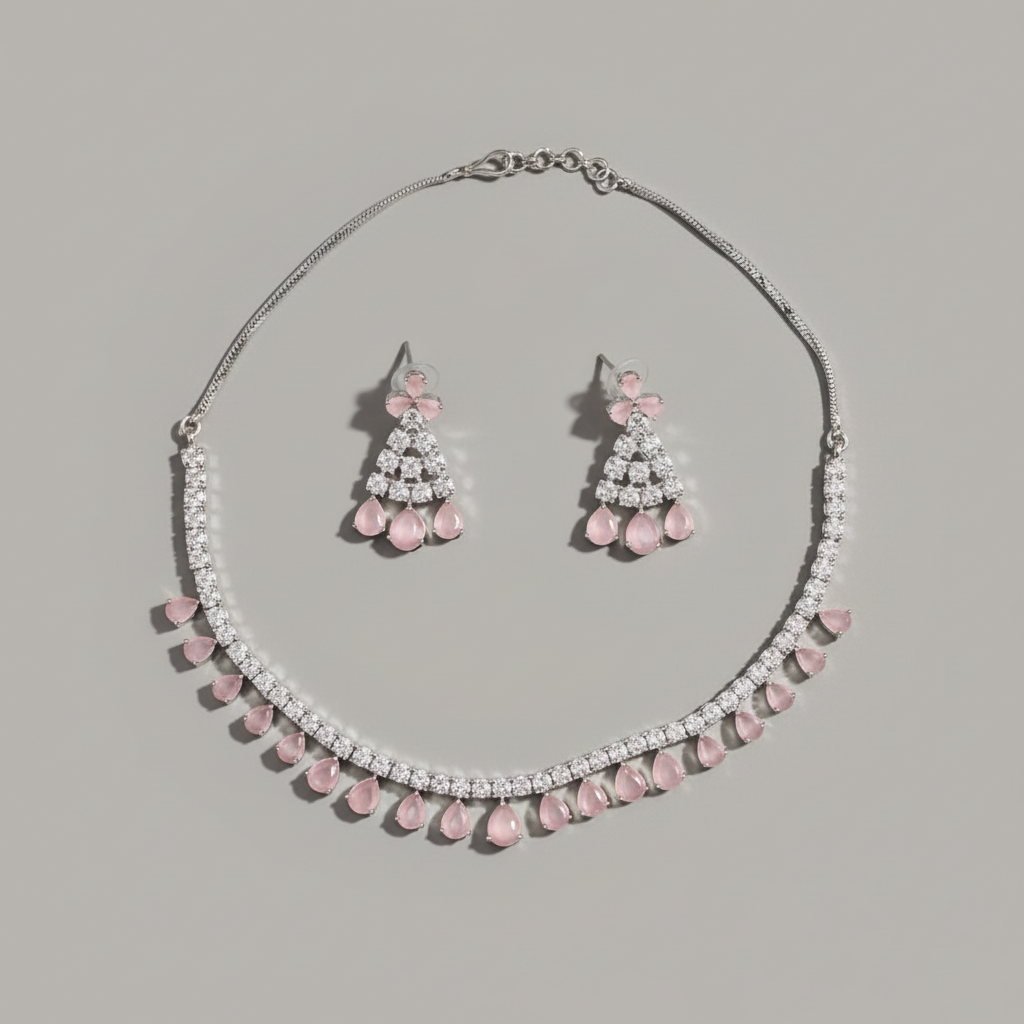 Pink Ratnashree American Diamond Necklace set