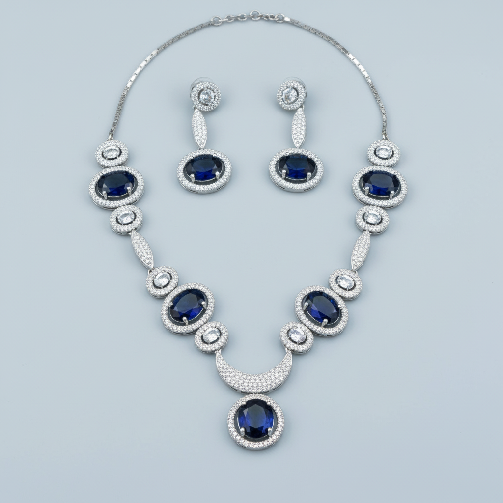Royal Blue Gaurangi American Diamond Necklace set