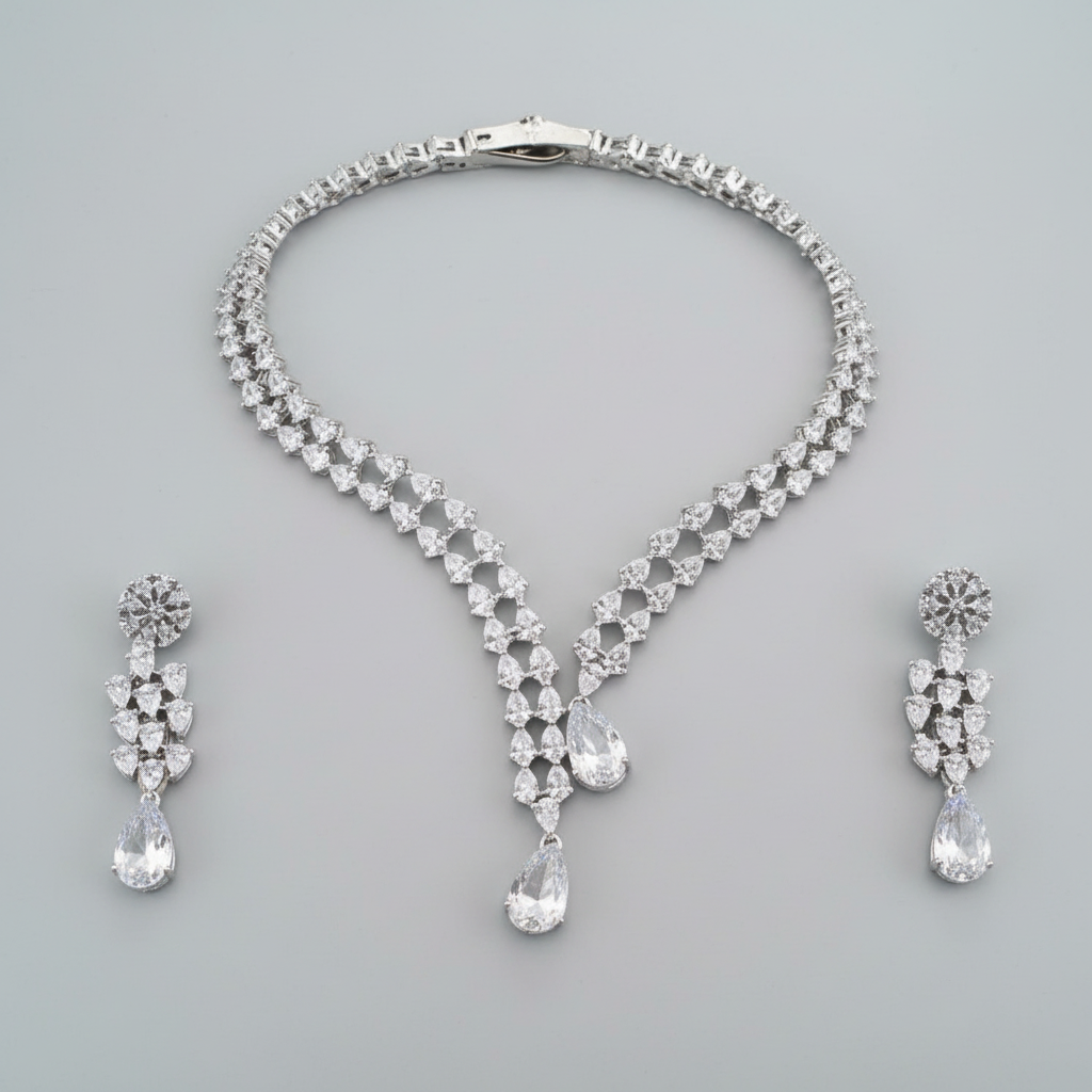 Premium-quality American Diamond set adorned with exquisite Zirconia stones, perfect for festive celebrations, weddings, and your upcoming special occasions.