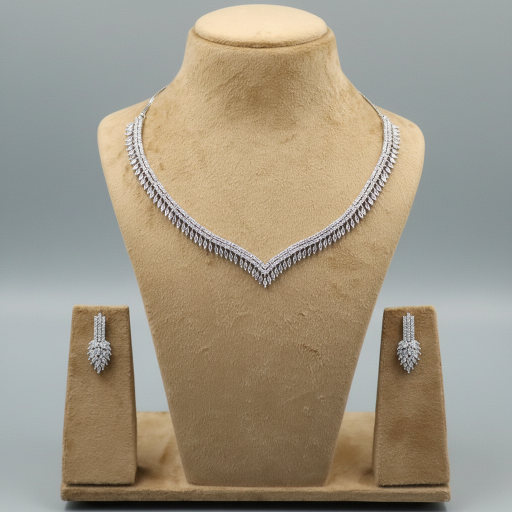 Premium-quality American Diamond set adorned with exquisite Zirconia stones, perfect for festive celebrations, weddings, and your upcoming special occasions.