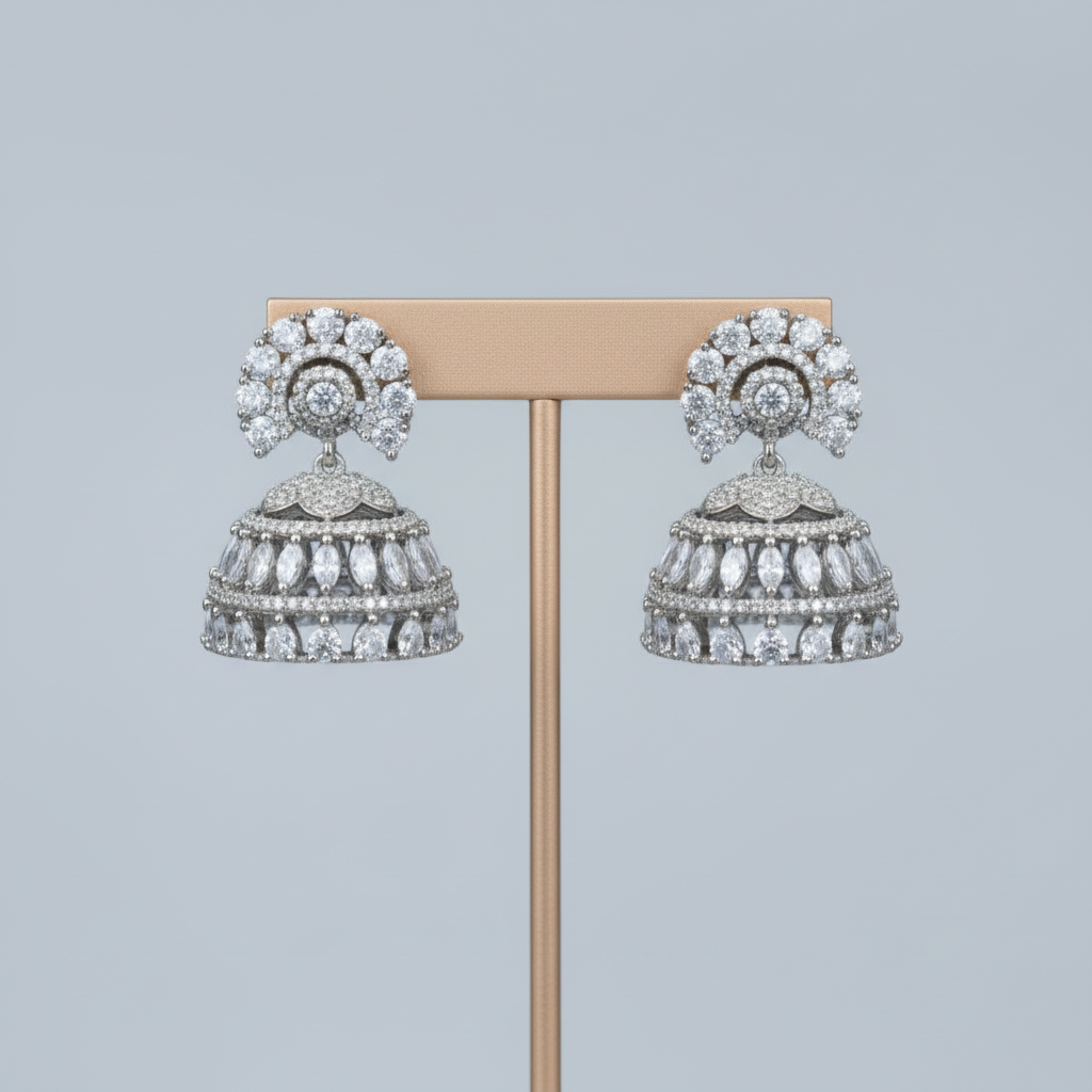 Silvery Priyadarshini American Diamond Jhumkis